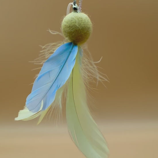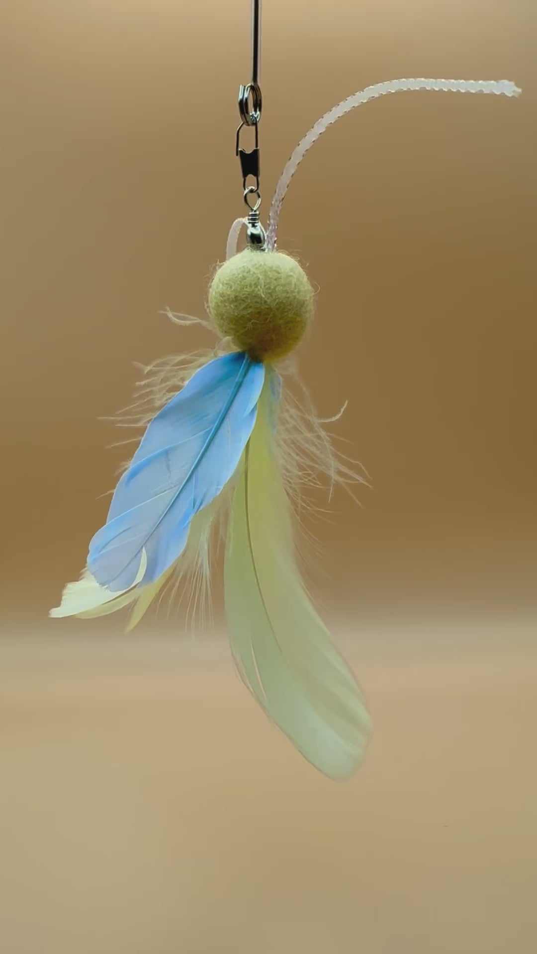 Spring Flutter features delicate pastel feathers in soft yellow, green, and blue tones, this toy captures the essence of a gentle spring breeze. The fluffy pom-pom centre and shimmering, trailing ribbons create an enchanting flutter with every movement. Every playful moment will feel like a fresh bloom in the sunshine!